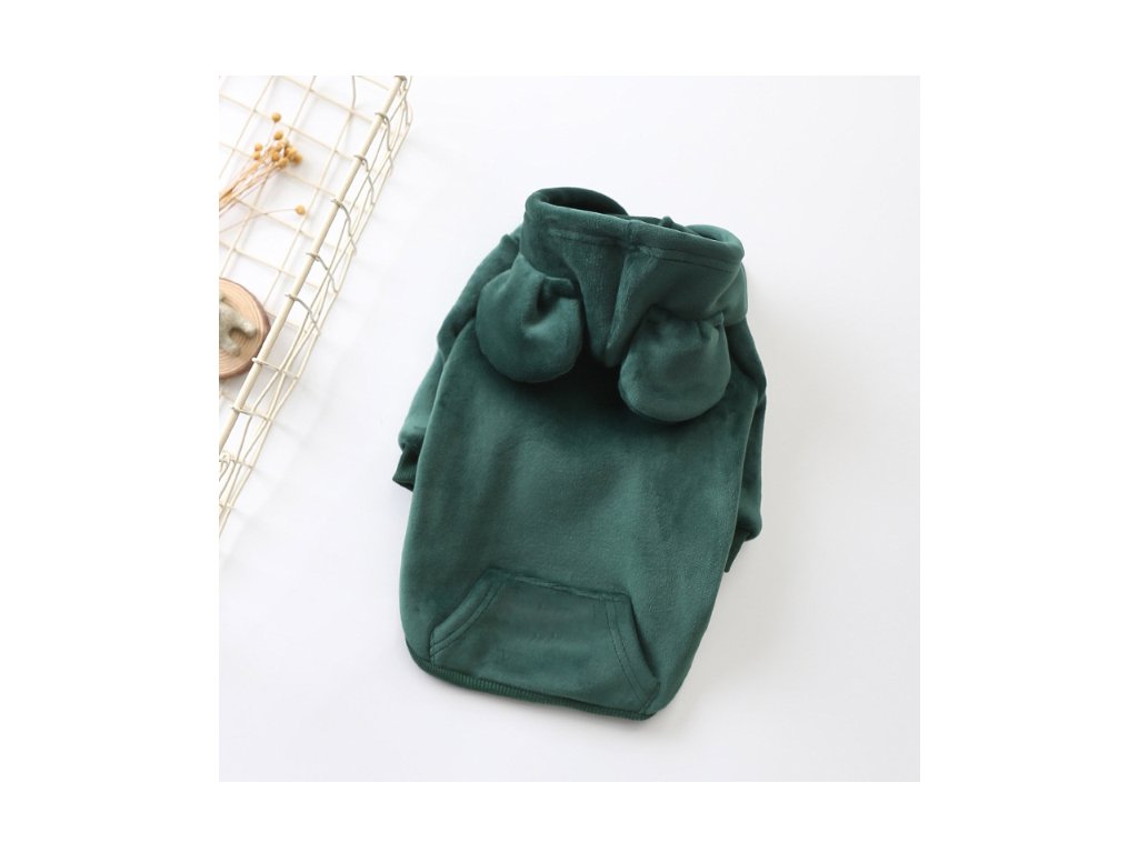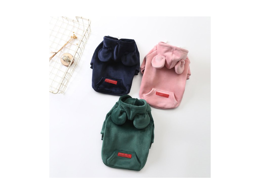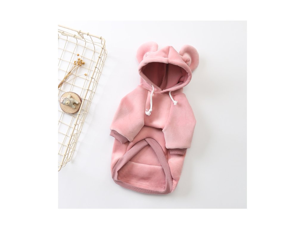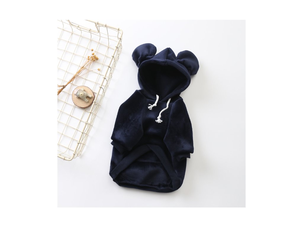 Štýlová mikina pre psov z teplákoviny s roztomilými uškami na kapucni. Mikina veľmi dobre sedí, na chrbte má štýlovú kapsu. Dostupná v niekoľkých farebných kombináciách a veľkostiach.