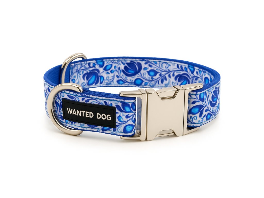 Modrý Nylonový obojok pre psa - folklór