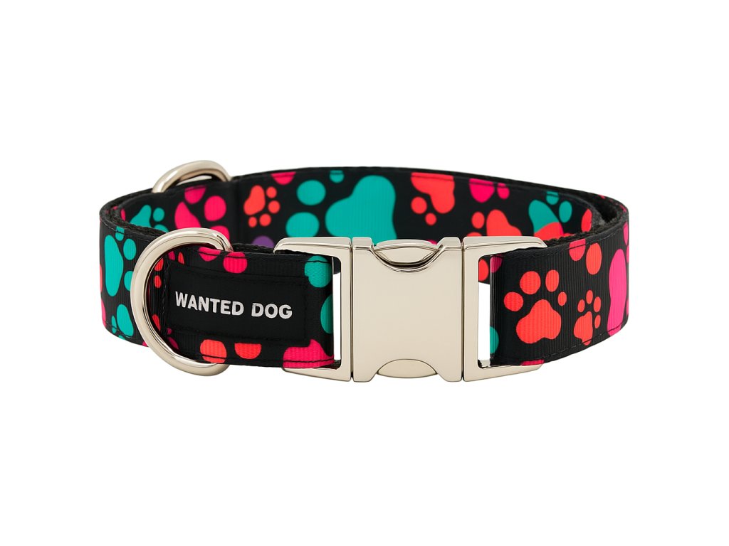 Farebný nylonový obojok pre psa značky Wanted Dog je skvelou kombináciou pevnosti, praktickosti a originálneho dizajnu. Vďaka ručnému šitiu, pevnému nylonu a dizajnovej stuhe získate kvalitný obojok pre psov, ktorý vydrží dlhé roky a dodá vášmu psovi štýl pri každej prechádzke.