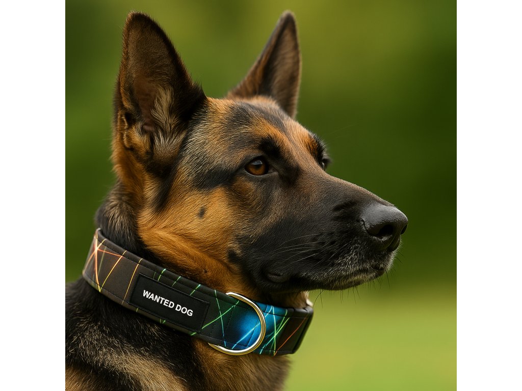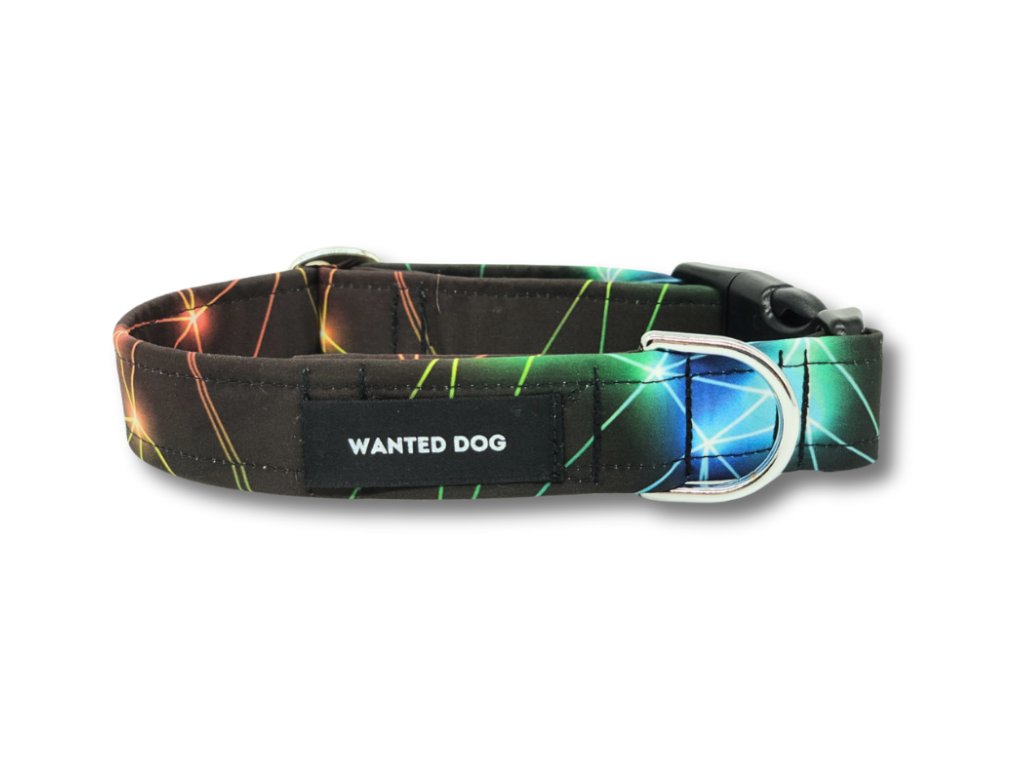 Ak hľadáte originálny obojok pre psa, ktorý kombinuje moderný dizajn, odolnosť a pohodlie pri každodennom nosení, potom je obojok pre psa GEOMETRIE NEON tou najlepšou voľbou. Tento model upúta výrazným geometrickým neonovým vzorom, ktorý vášho psíka zviditeľní na ulici aj v prírode. Každý kus je ručne šitý v našej dielni Wanted Dog, čo zaručuje vysokú kvalitu a dlhú životnosť. Ide o luxusný obojok pre psov, ktorý je praktický aj estetický zároveň.