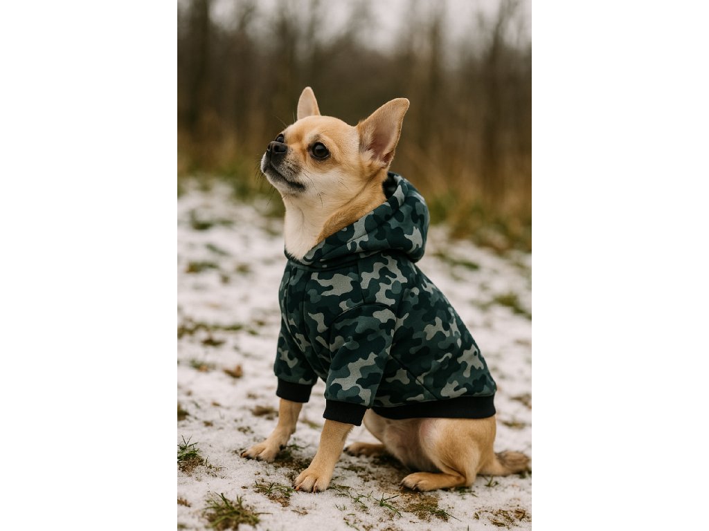 WANTED DOG Hrejivá mikina pre psa s kapucňou ARMY